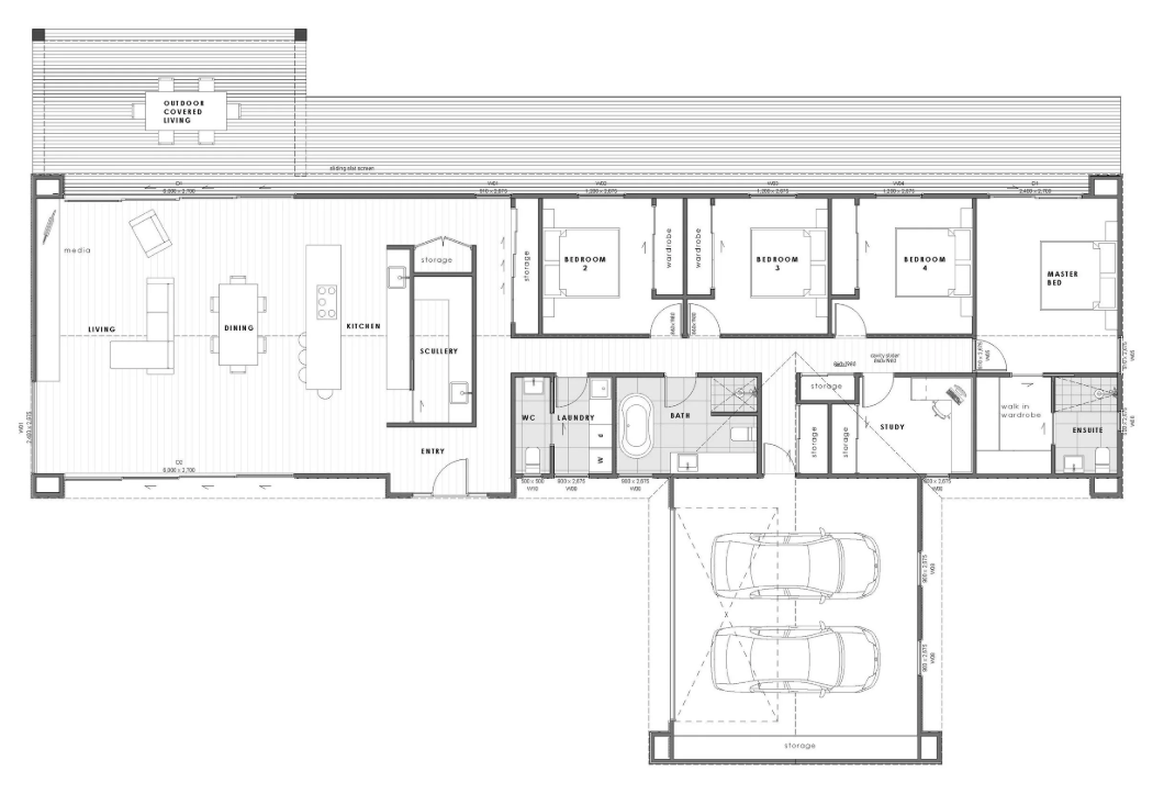 258m2 modern floor plan. (excludes covered outdoor area)
